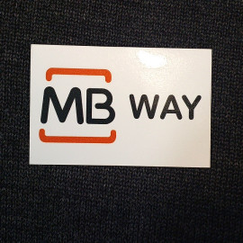 Autocolante MB Way com espaço para colocação do número de telefone.Impresso em vinil autocolante e Laminado/Plastificado a brilho.Pode ser colado no interior ou exterior!Dimensões: 107x82mm..